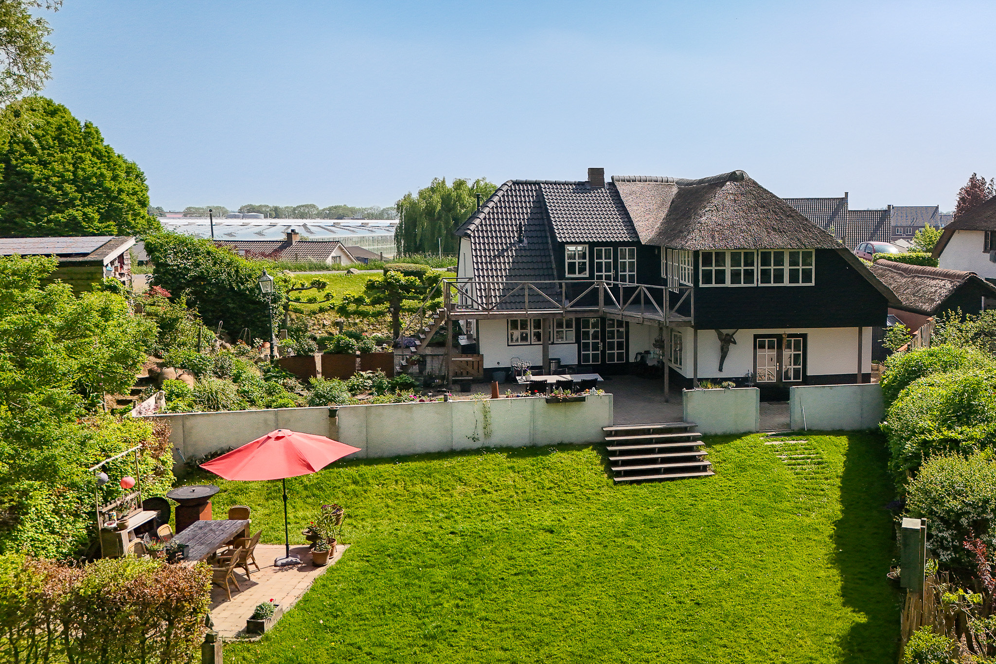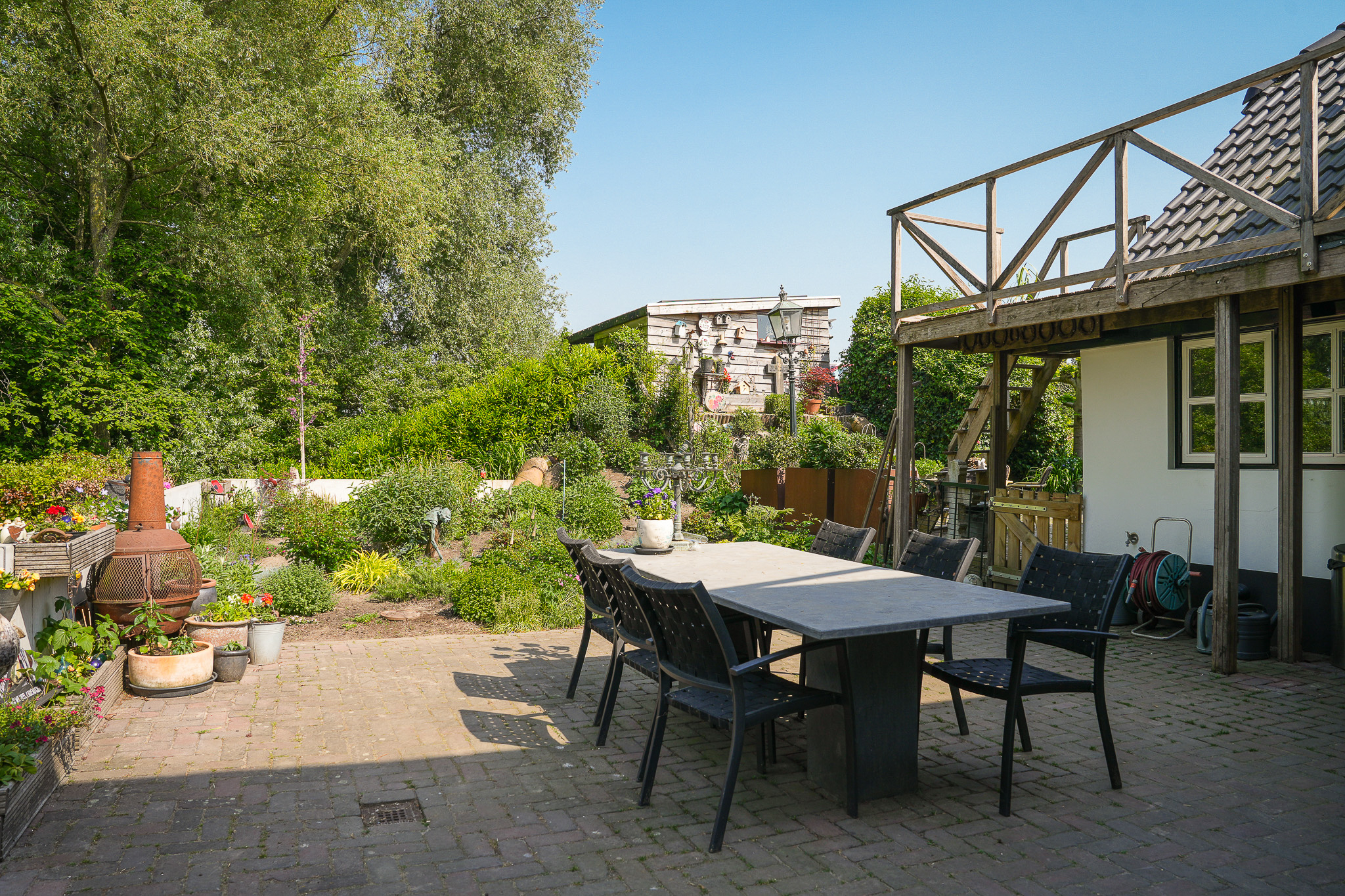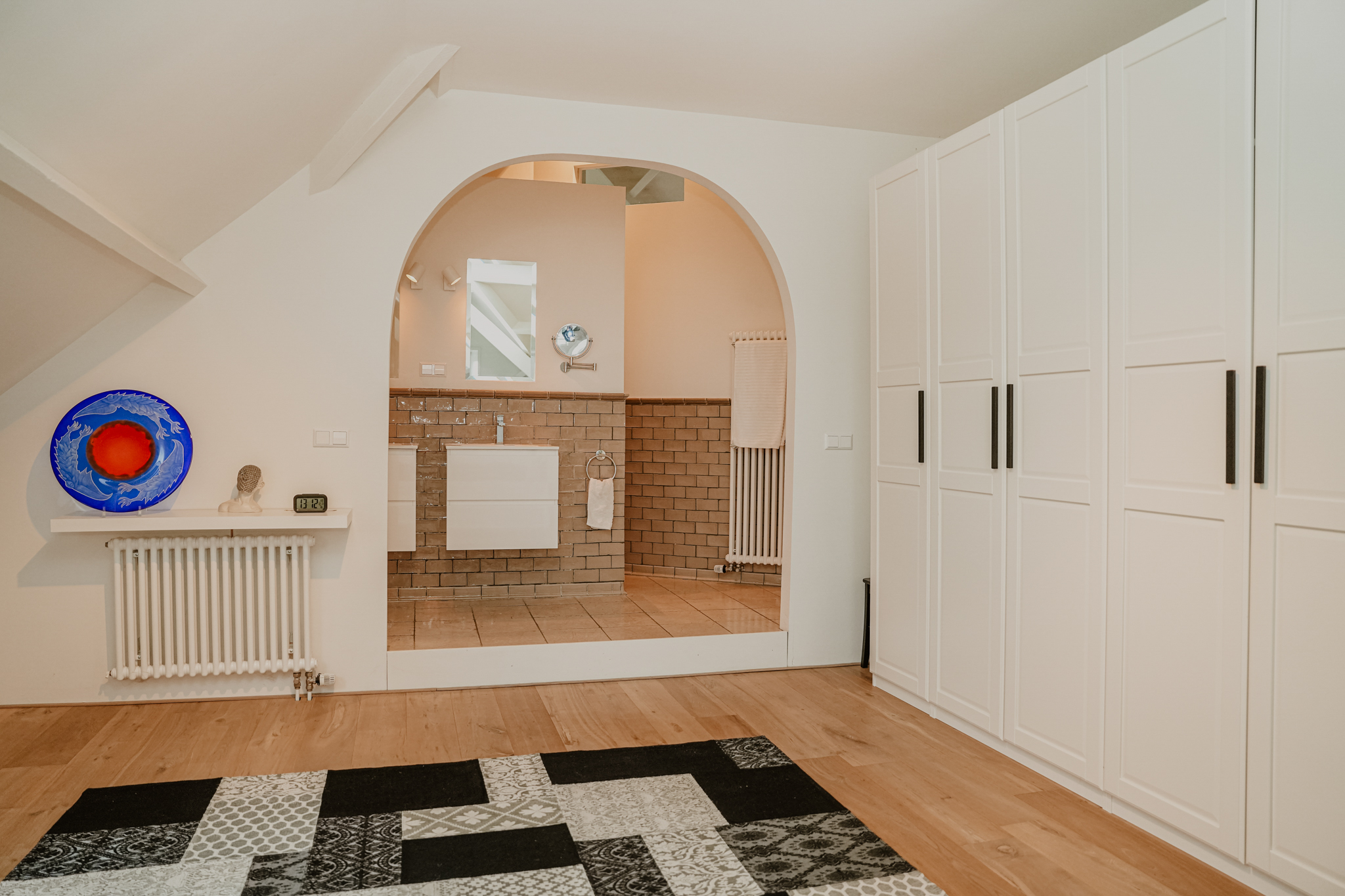 楼下空间布局包含一间卧室、全新奢华浴室、实用的杂物间,以及通过经典法式双开门通往专属露台的花园房。复古红色修道院地砖和地暖兼顾舒适与历史韵味。楼上,橡木地板与裸露木梁为临河起居室营造安静私密的氛围,而法式门通向屋顶露台,开阔美景彰显此地的独特格调。2003年加建部分提供宽敞的第二起居空间或工作室,落地窗环绕,尽揽河流与天空。